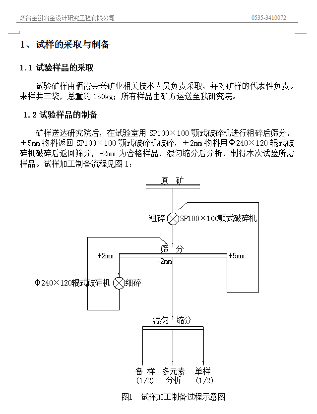 此部分主要包括對選礦試驗所用礦樣進行采取和制備,以下是為客戶提供礦樣的加工流程圖。