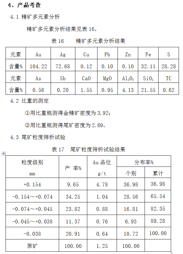 以下是對客戶礦樣選出的 精礦和尾礦分析結果表。
