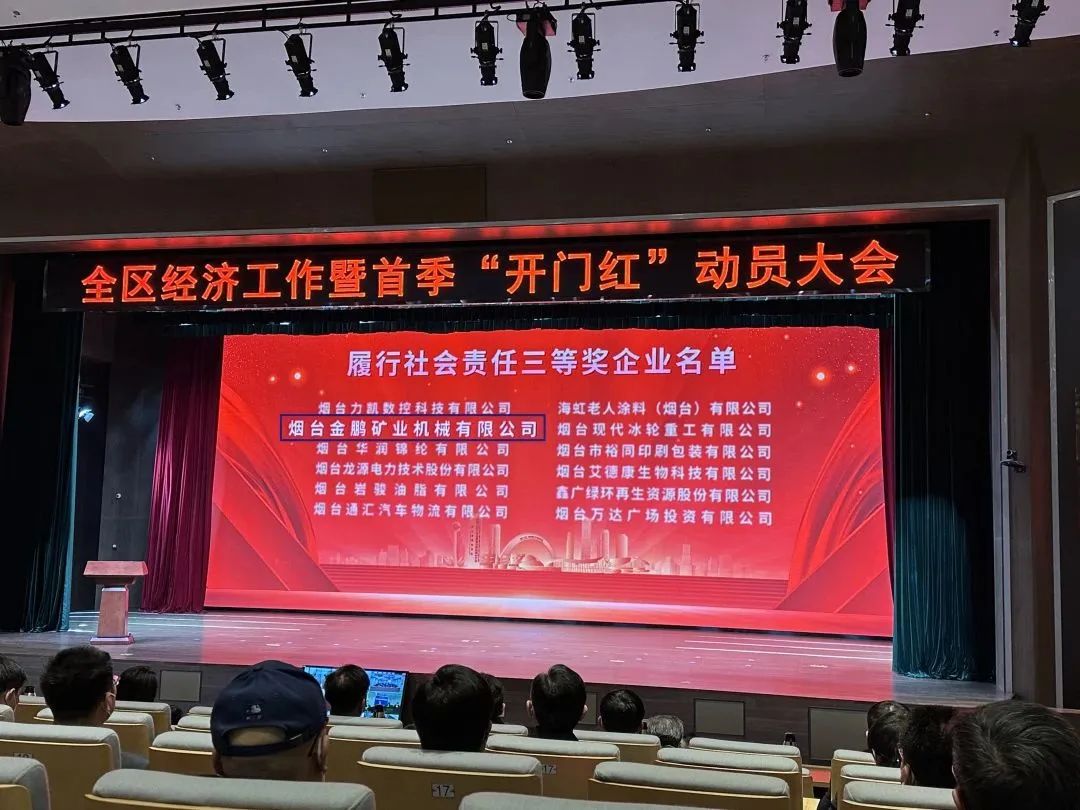 1月29日上午,煙臺(tái)黃渤海新區(qū)全區(qū)經(jīng)濟(jì)工作暨首季“開門紅”動(dòng)員大會(huì)在美麗的八角灣會(huì)展中心隆重舉行。會(huì)上,金鵬礦機(jī)被評(píng)為“履行社會(huì)責(zé)任三等獎(jiǎng)企業(yè)”,許慶硯總經(jīng)理獲頒“2022年度履行社會(huì)責(zé)任優(yōu)秀企業(yè)家”榮譽(yù)稱號(hào)。