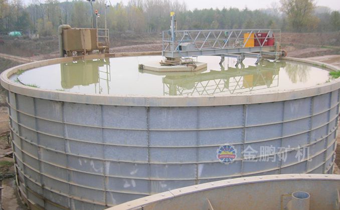 礦漿由給礦筒給入,自由沉降于耙子區(qū)的礦漿受刮板的壓力進一步濃縮,由耙子逐漸刮向池子中心,由排礦口靠重力排入下一層池子?清水經分配箱進入最下層對物料進行最后的洗滌,最下層的溢流返回分配箱進入第二層對物料進行洗滌,第二層的溢流返回分配箱進入第一層對物料進行洗滌,第一層的溢流經溢流堰排出,經三次洗滌的物料經底部排出。