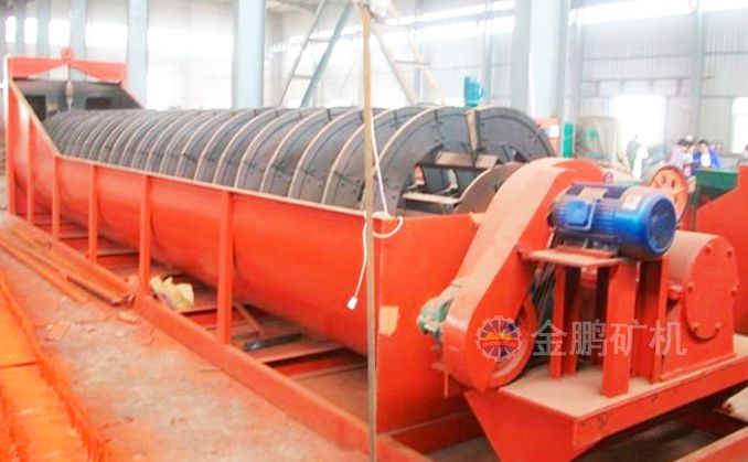 沉沒式螺旋分級機是借助于固體粒大小不同、比重不同,因而在液體中的沉降速度不同的原理,細礦粒浮游在水中由溢流堰溢出,粗礦粒沉于槽底,由螺旋推向上部排出,來進行機械分級的一種分級設備。通過螺旋低速轉動,對礦漿起攪拌作用使細顆粒懸浮到上面,流到溢流堰處溢出,粗顆粒沉到槽底,由螺旋輸送到排料口作為返砂排出。